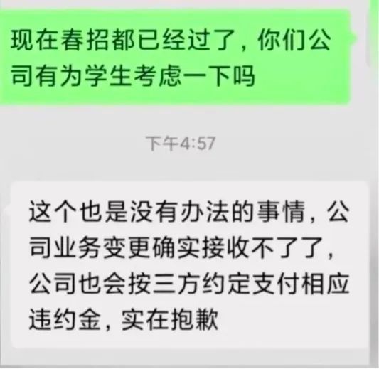 5月26日,中创新航向已解约的应届生分享招聘会信息,称新能源行业面临诸多机遇与挑战,为适时响应市场和客户需求,公司进行了相关业务调整,因此作出解约决定。