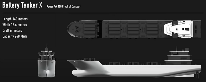 “Battery Tanker X”号将配备96个集装箱式船用电池,提供241MWh的总容量。船载电池系统基于该公司专有的模块设计,具有安全可靠的磷酸铁锂(LFP)电池单元,确保其寿命超过6000次。